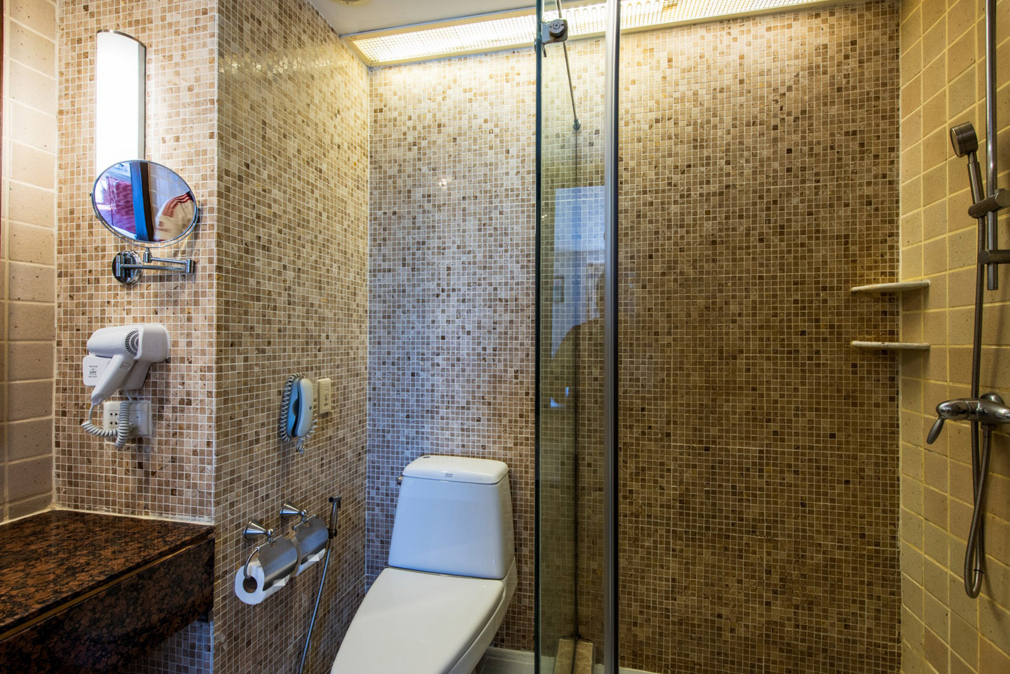 32 Sqm, Luxurious design in Contemporary private balcony with city view and separate shower and bathtub.